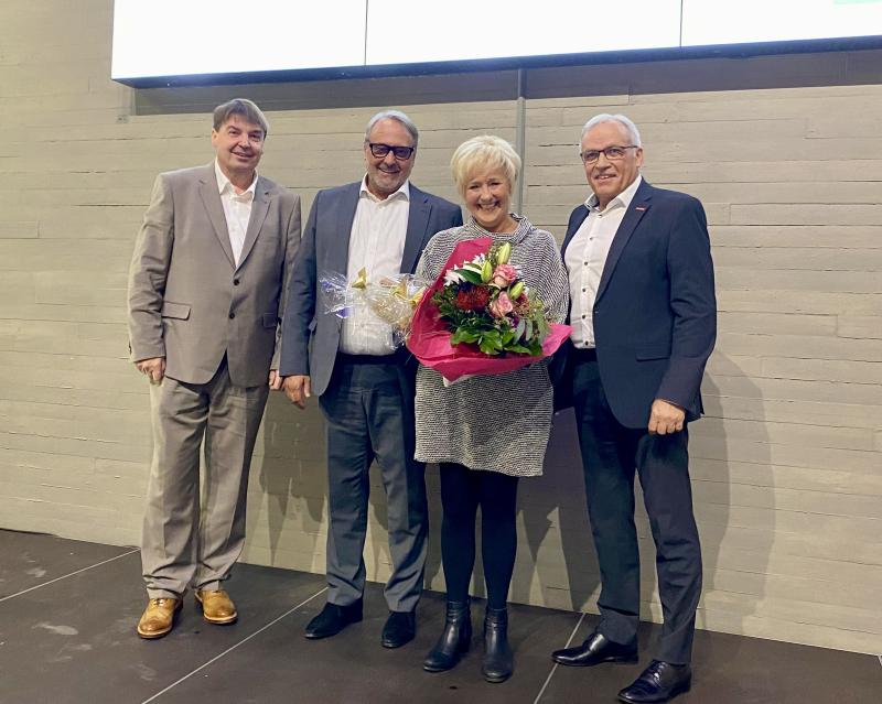 ![]() Foto: Katrin BerklerAuch die Geschäftsführung der Handwerkskammer Koblenz mit v.l. Bernd Hammes, Ralf Hellrich und Kurt Krautscheid gratulierte Frau Berkler zur Ehrenobermeisterin und sprachen Dank und Anerkennung aus. | |||||