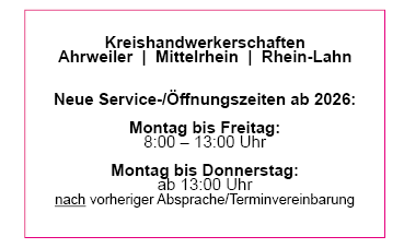 wir passen unsere Servicezeiten ab 2026 an und bündeln unsere Erreichbarkeit, um Ihnen auch weiterhin einen verlässlichen, gut planbaren und effizienten Service bieten zu können.